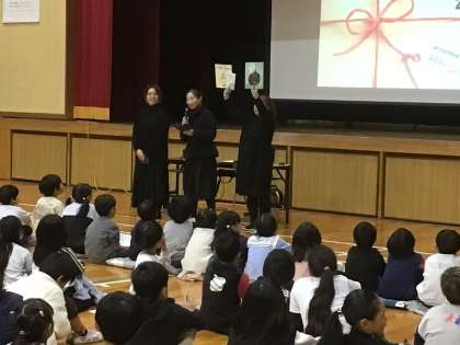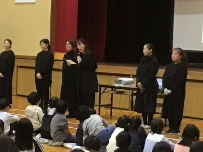 図書委員会の司会のもと、ドリームクラブさんによる読み聞かせが行われました。本の世界に夢中になったり、みんなで群読をして楽しいひとときを過ごしました。