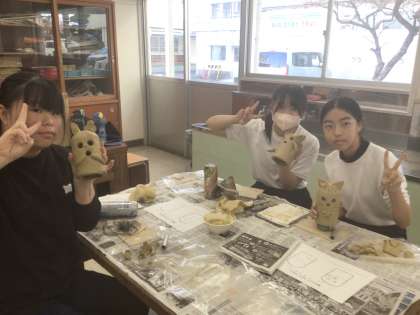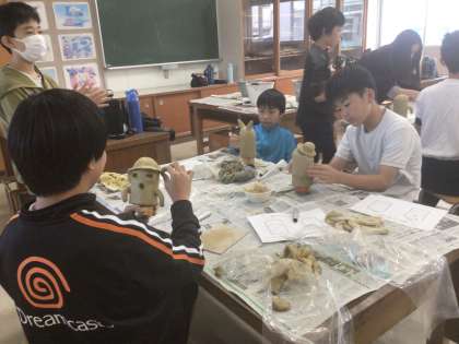 楽しくはにわを作りました。表情が真剣でした。出来上がりが楽しみです。