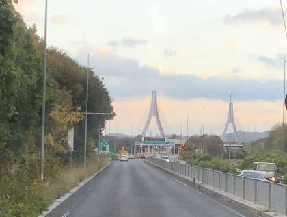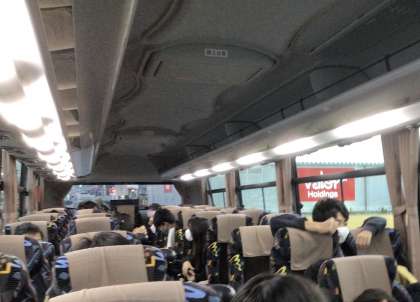 豊田東インターから高速道路に乗りました。伊勢湾岸道を通り西へ向かいます。落ち着いてバス内で過ごしています。