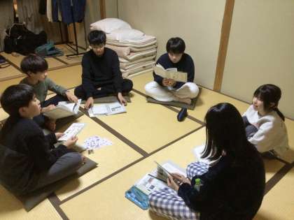 6年生 修学旅行12 公開日 2025/11/28 更新日 2025/11/28 お知らせ ものづくり体験のあと、今日の締めくくりは、班別学習会です。それぞれの班で、一人ずつ今日の振り返りをして、明日の改善点を話します。明日の班行動の目標も見直しました。