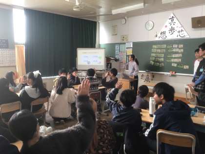 豊田高専の学生が、外来種の授業を行ってくださいました。外来種だった意外な生き物がいて驚きもありました。外来種には悪意はなく、人間によって持ち込まれてしまったこと、環境を崩してしまう危険があることなどから、生き物との関わりを考えました。高専の学生の作ったクイズはとても盛り上がり、楽しく学ぶこともできました。休み時間も高専学生と一緒に楽しく過ごしたり、高専で学んでいることを知ったりして、少し近い未来の自分を想像できる機会ともなりました。