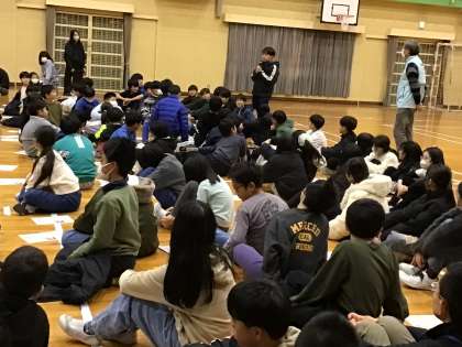 12月9日(火)に、人権擁護委員の方々にお越しいただき、人権講演会を実施しました。誰もが生まれた時から幸せに生きる権利をもっていること、自分も、自分の周りにいる人も、世界でたった一人の大切な人、大切な命であることを学びました。そして、自分を大切にすることは、相手も大切にすることなんだと感じ取ることができました。人権意識の高い、人の痛みが分かる子に育ってほしいと思います。