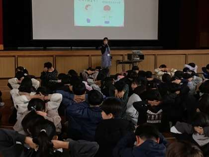 12月23日(火)に冬休み前集会を行いました。会に先立って、音楽クラブによるトーンチャイムの演奏を聴きました。曲目は、男子チームによる『ジングルベル』と女子チームによる『きよしこの夜』で、体育館中に響き渡る美しいトーンチャイムの音色に全校児童が聴き入り、クリスマス気分を味わうことができました。校長先生からは、冬休み中に『ありがとう』をいろいろな人に言えるようにしようというお話がありました。また、各担当の先生からは、冬休みの約束や健康な生活についてのお話がありました。