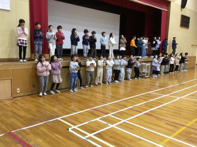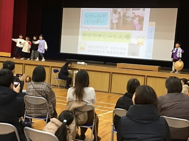 2月7日(土)に学習発表会を行いました。主に生活科や総合的な学習で学んだ成果を、どの学年の子どもたちも生き生きと発表していました。1年生は「できるようになったこと発表会」で、親子で学校を回りながら、鍵盤ハーモニカの演奏やなわとびの練習の成果を発表しました。2年生は、町探検でおじゃましたいろいろなお店の秘密を、かさこじぞうのお話と組み合わせて楽しく発表しました。3年生は、高齢者擬似体験や視覚障がい、聴覚障がいのある方の出前授業を通して学んだことをグループで発表しました。