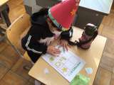 本校児童の3人が中庭の木周辺に木の柵を作って土に埋める作業まで行ってくれました...