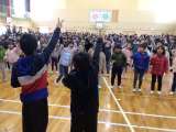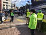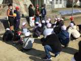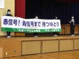 元城小学校交通安全推進協議会が中心となり、学校北にある歩道橋に掲げてある交通安...