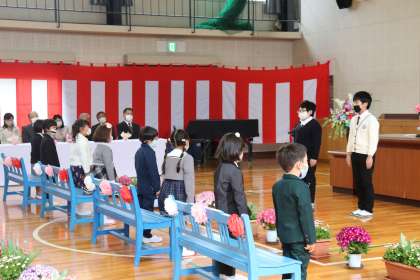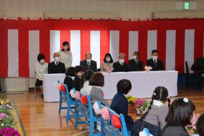 入学式・始業式 その4 公開日 2021/04/09 更新日 2021/04/09 お知らせ 来賓も例年より少ない人数にしました。来賓紹介では、区長様や学校アドバイザー様、園長先生に「おめでとうございます」と言っていただき、嬉しそうでした。 式の後、記念撮影をして、教室へ行きました。保護者も一緒に、初めての学級活動です。