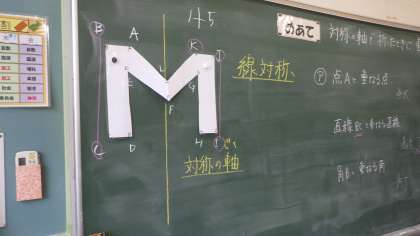 対称な図形 6年生 公開日 2021/04/13 更新日 2021/04/13 お知らせ 6年生の算数「対称な図形」の授業風景です。 今日は「線対称」を初めて学習しました。Mの形の図形を切り取って、それを折って重ね、調べました。実際にそれぞれに形の紙を手に取って操作することで、線対称の意味や対応する点や線について、理解を深めていました。その後、学習したことをノートにまとめました。 5年