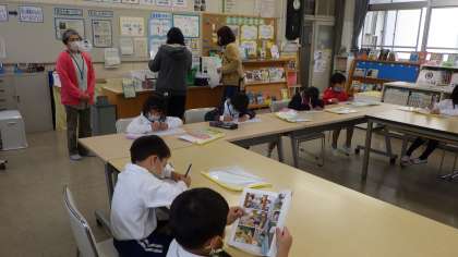 今日から、1,2年生の下校待機(居場所づくり事業)が始まりました。本校では、下校の安全のため、火・水・金曜日を下校待機とし、一斉下校にしています。下校待機の時間帯は、地域スタッフの方が1,2年生の子どもの様子を見守ってくださいます。子どもたちは、宿題をしたり、工作やゲームをしたりして過ごします。地域スタッフの皆さんに、話しかけたり、一緒にゲームをしたりしています。地域の方々に優しく見守られ、話をしっかり聞いてもらえ、満足そうな子どもたちです。