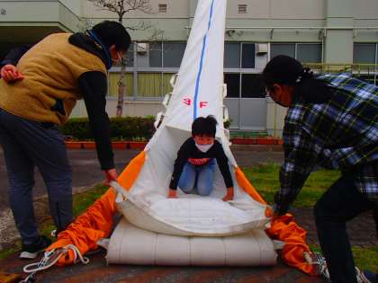 避難訓練 公開日 2021/04/16 更新日 2021/04/16 お知らせ 4月16日(金)、全校で避難訓練をしました。地震のあと、理科室から出火したという想定で、校舎の裏の職員駐車場へ避難します。「押さない」「走らない」「しゃべらない」「戻らない」の約束事を守って、防災頭巾をかぶって、すばやく非難ができました。 行事