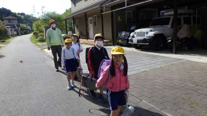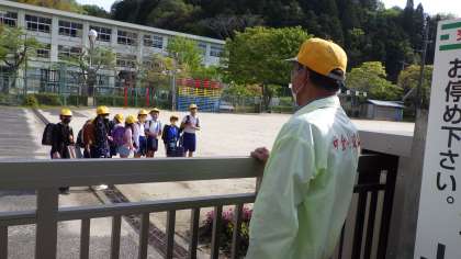 登校付き添いボランティア 公開日 2021/04/22 更新日 2021/04/22 お知らせ 子どもたちの安全のために、毎朝、登校に付き添ってくださる地域ボランティアの方々がいらっしゃいます。中切方面は、中切の集合場所から学校まで、中金方面は、新聞店から辻まで、付き添ってくださっています。本当にありがとうございます。3枚目の写真は、門のところで子どもたちがお礼を言っているところです。 地域学校共働本部