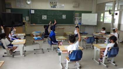 いつもは学年それぞれで道徳を行っていますが、人数を増やすことでいろいろな意見が出ることをねらって、今日は一緒に授業をしてみました。
