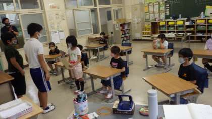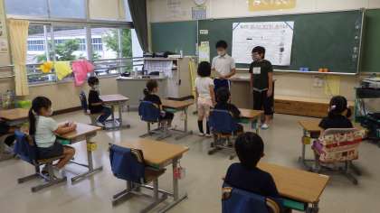 今日の放送で「みんな、あいさつが前よりもできるようになってきました。特に1年生が頑張ったので、表彰をします。」と6年生が話をしました。