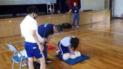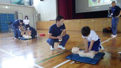 応急手当講習 5,6年生 公開日 2021/06/17 更新日 2021/06/17 お知らせ 6月17日(木)、北消防署の方々にお越しいただき、5,6年生が応急手当講習を受けました。 心臓マッサージやAEDをしていたら助かったかもしれない小学生の話を動画で見たあと、消防士さんからやり方を教えていただきながら、一人ずつ心臓マッサージを行いました。 5年 6年