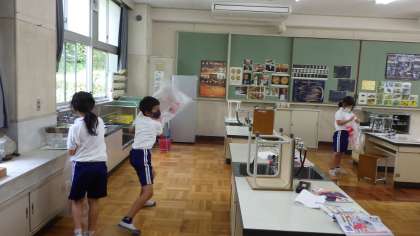 とじこめた空気と水 4年生 公開日 2021/06/24 更新日 2021/06/24 お知らせ 4年生の理科「とじこめた空気と水」の授業です。今日はこの学習に入ったばかりの時間で、まず、空気を袋に閉じこめる体験をしました。軽く走ったり、回ったりしながらビニール袋に空気を閉じこめた子どもたち。押した感触を楽しんでいました。次からは、水を容器に閉じこめ、同じように押したときにどうなのか、比較していきます。 4年