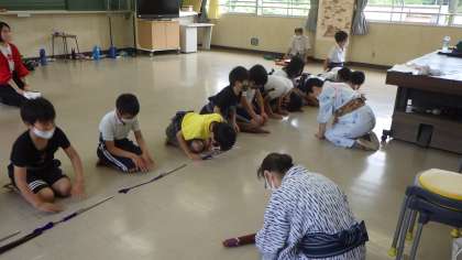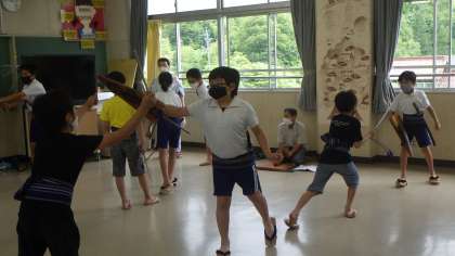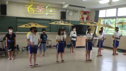 石野歌舞伎 5,6年生 公開日 2021/06/25 更新日 2021/06/25 お知らせ 6月25日(金)、5,6年生が石野歌舞伎の練習をしました。本当は、石野交流館の舞台を使って練習をする予定でしたが、バスに乗る予定の時間に雷がゴロゴロしていたので、行くのをあきらめ、学校で練習をしました。 石野歌舞伎保存会の方々の指導のもと、子どもたちも今まで頑張って練習してきたので、一通り演技ができるようになりました。本番まで1週間。石野交流館の舞台での演技がとても楽しみです。 5年 6年 特色ある学校づくり 特色ある活動