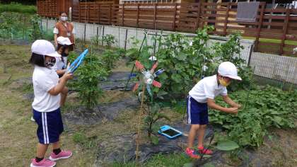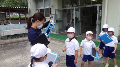 観察記録 1,2年生 その2 公開日 2021/06/28 更新日 2021/06/28 お知らせ 次に、外に出て、観察する植物を埼栄しました。2年生の野菜は目印になるビニールタイを結んでから撮影しました。 最後に音楽室に戻り、コメントのつけ方を学習しました。これから毎日撮影をしていきます。1年生は夏休みにあさがおを持ち帰るので、タブレットでの撮影を続けます。最後に動画を見るのがとても楽しみです。 1年 2年