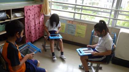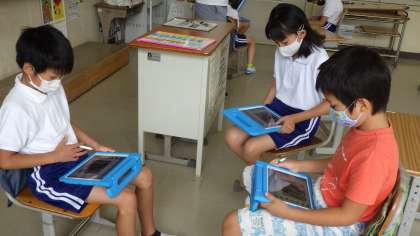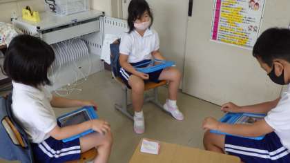 環境フォトコンテスト 3,4年生 公開日 2021/06/28 更新日 2021/06/28 お知らせ 3,4年生が総合的な学習で、環境について学んでいます。夏休み後に応募する「環境フォトコンテスト〜わたしのまちの〇と×」は、環境の観点から「未来に残したいもの(〇)」と「改善したいもの(×)」を写真に撮ってコメントを添えるものです。 今日は、自分たちの撮ってきた写真をグループで見合い、理由を話し合っていました。 タブレットを持ち帰ったとき、家の周りでも、〇と×を探していきます。 3年 4年