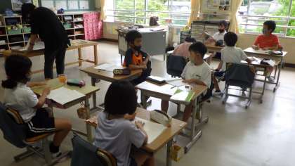 4年生の国語「みんなで新聞をつくろう」の授業です。社会科の「水道」の学習では、以前国語で学習したことを使って、一人ずつ新聞にまとめました。