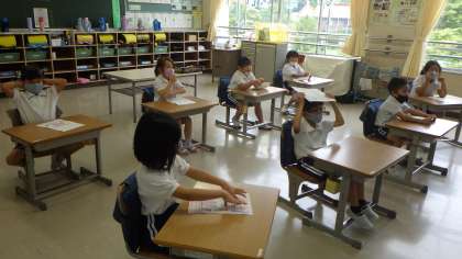 1年生が、中金こども園から夏祭りの招待状をいただきました。招待状を手にした子どもたちは大喜びでした。生活科で夏祭りに行く計画を立てました。「何時からだから出発はいつぐらいがいい」とか「持ち物は何が必要か」ということを考えました。7月14日に出かけていきます。