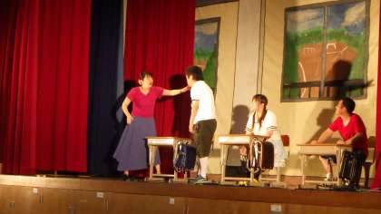 まず、5時間目に、全校で「喜劇団・笑劇波(しょうげきは)」の劇を観ました。ファニーチャップの漫才、笑劇波の劇で、「スマホやパソコンでゲームをするときは、課金に気を付ける」「スマホやパソコンはお家の人と一緒にやる」「時間を決めて、やりすぎないようにする」「困ったらすぐにお家の人に相談する」などについて、面白く、分かりやすく教えていただきました。