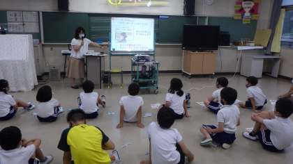劇が終わると4〜6年生は音楽室に移動し、6時間目は、豊田市消費生活相談員の方のお話を聞きました。小学生向きのパンフレットを見ながら、「契約のルール」「商品の選び方」「小学生に多いネットのトラブル」について学習しました。