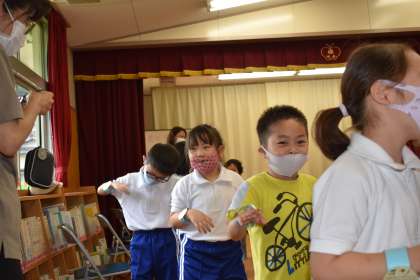 こども園夏祭り 1年生 公開日 2021/07/15 更新日 2021/07/15 お知らせ 6月14日(水)、中金こども園に招かれ、1年生がこども園の夏祭りに参加しました。 まず、挨拶と自己紹介。大きな声で堂々と話すことができ、園の先生方に成長した姿をお見せすることができました。 輪になって盆踊りをしたり、お店屋さんで買い物をしたりしました。 1年 特色ある学校づくり 特色ある活動