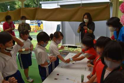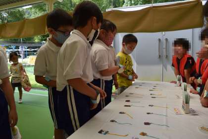 年長さんが開いた「キーホルダーやさん」では、手作りのキーホルダーを前に、楽しそうに選んでいました。