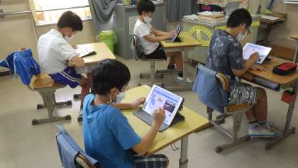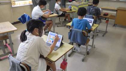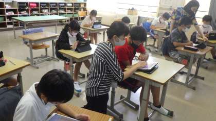 ゲームづくり 5年生 公開日 2021/09/06 更新日 2021/09/06 お知らせ 9月6日(月)、ICT支援員の訪問日でした。プログラミング学習として、1・2年生が「ビスケット」という簡単なゲーム、5年生が「ピンポンゲーム」作りを行いました。写真は5年生の授業の様子です。命令の入れ方の要領が分かると、次々に自分たちで入力していき、動きを工夫してゲームを作ることができました。 5年