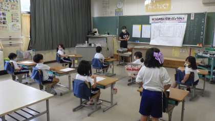 1年生の国語の学習で、夏の思い出についてスピーチをしました。メモを見ながらスピーチをしている様子を動画に撮り、それを見ながら振り返りをしました。「メモでちょっと顔が隠れているね。」「もっと大きな声で話さないと聞こえにくいな。」など、自分の話し方についても気づくことができました。