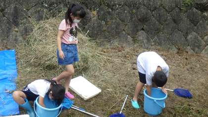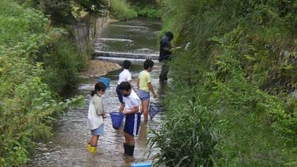 全国水生生物調査 3,4年生 その2 公開日 2021/09/17 更新日 2021/09/17 お知らせ 子どもたちは調査を楽しみに準備をしていきました。長靴やウォーターシューズを履いて、タモをもって、さあ、川に入ります。 4年生は総合的な学習で、川に何度も入っていますが、3年生は生物調査は初めて。見よう見まねでタモですくったり、石を裏返したりしました。「ヤゴがいたよ。」「ミズカマキリがいた。こっち。」と生き物を見つけては、友達に教えていました。 3年 4年 特色ある学校づくり 特色ある活動