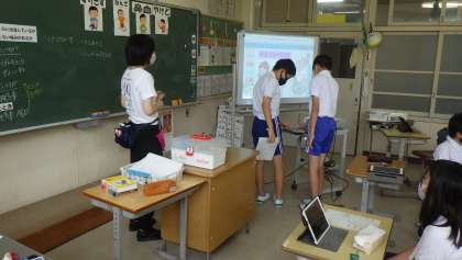 けがの手当て 5年生 公開日 2021/09/22 更新日 2021/09/22 お知らせ 5年生の保健「けがの手当て」の授業です。「すりきず」「ねんざ」「やけど」「鼻血」のとき、どう応急手当をしたらよいか、ペアで発表をしていました。養護教諭からも手当の仕方について説明があり、子どもたちはしっかり聞いていました。いざというとき、すぐに正しい処置ができるとよいですね。 5年