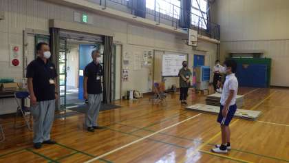 中金防災の日 その4 公開日 2021/10/04 更新日 2021/10/04 お知らせ 片付けも協力して行い、あっという間に片付きました。 防災対策課の方から、防災についての準備、心構え等についてお話をしていただきました。6年生児童が代表でお礼を言いました。 子どもたちには「今日、活動したことをお家の人に話をしてね。災害に備えて3日分の食料や水の備蓄が必要なこと、避難をどうするかということについても、お家の人と話してね。」とお話しました。 特色ある活動