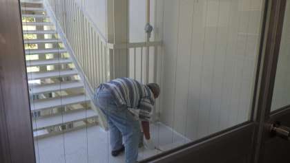 10月6日(水)、地域の環境ボランティアの方が、非常階段のペンキ塗りをしてくださいました。さびを丁寧に落とし、ペンキを塗ってくださいました。時間をあけて午後にも来てくださり、仕上げ塗りをしてくださいました。非常階段が白く美しくなりました。ありがとうございます。途中で通りかかった3年生が「ありがとうございます。」とお礼を言いました。