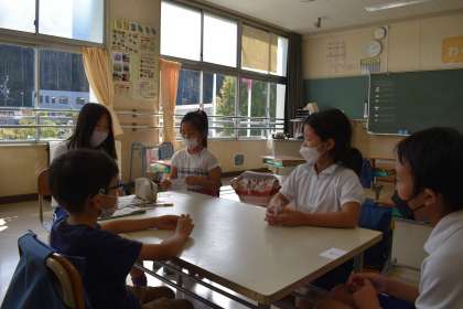 10月8日(金)、後期の南山班始めの会を行いました。まず、前期の班ごとに各教室に集合し、活動を振り返り、感謝の言葉を交換しあいました。次に、後期の班ごとに集まり、挨拶や自己紹介をしたあと、班のめあてを決め、写真撮影を行いました。