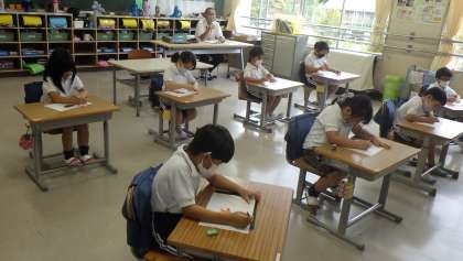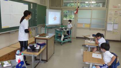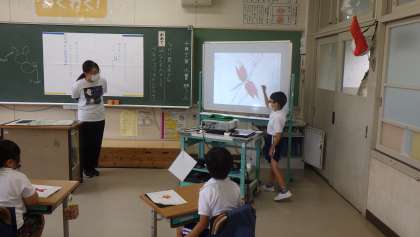 何に見えるかな 1年生 公開日 2021/10/13 更新日 2021/10/13 お知らせ 1年生の国語「何に見えるかな」の学習です。落ち葉を使って表現をした物の写真を使って、それが何に見えるかを話したり、友達の話を聞いて質問したりする活動を行いました。写真の2,3枚目は、子どもが話し、先生が聞き役になっています。この後、「どんな風に聞いたらよいか。」という気付きを発表しました。 1年