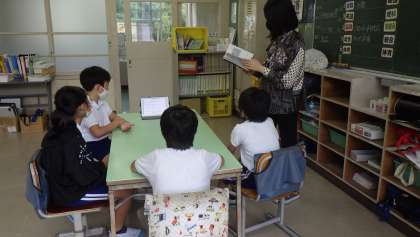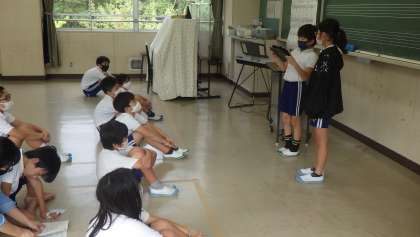 今週の金曜日、5年生がキャンプに出かけます。写真は、先日の練習の様子です。キャンプファイヤーや退所式で、それぞれ役割があります。どんな言葉を言うかをグループで確認をしたのち、音楽室で実際の形でやってみました。