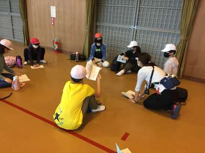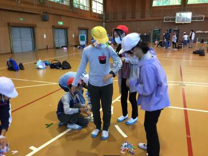 仲良し班タイムです。班の仲間とゲームを楽しむうちに、少しずつ打ち解けてきました。