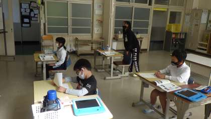 3年生社会科「くらしを守る」の学習です。警察の仕事について、子どもたちが知っていることを話していました。駐在所のお巡りさんがパトロールをすることについて、「いつも学校に行くときにパトカーに会うよ。」「登校の時間に合わせて、見守ってくれているのかな。」などと話をしました。