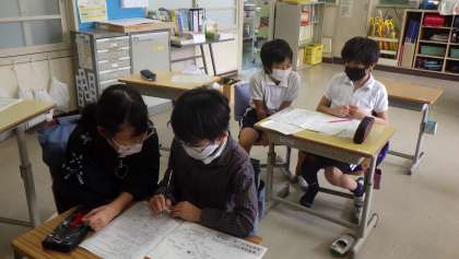 ふるさと遠足の計画 5・6年生 その2 公開日 2021/10/20 更新日 2021/10/20 お知らせ 話を聞いたあとは、班ごとに分かれて、計画を立てました。回るポイントと順番は決まっていますが、それ以外にも見てきたところ、写真を撮る場所、目安になる時間について、地図を見ながら話し合い、計画を紙に書きました。 当日はポイントに教員が立ち、班長は時計と携帯電話を持って回ります。 5年 6年 特色ある活動 地域学校共働本部