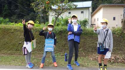 3つのポイント地点の時間は決まっていましたが、あとはゴールの時間が決まっているだけです。班長やそれを支える5,6年生は、時計の時間を気にしながら、下学年を気にかけて声をかけたり、安全に気を配ったりしてくれました。班で一つ、デジタルカメラも持っていったので、見つけたステキな物を取ったり、班で記念撮影をしたりしながら道中を楽しみました。