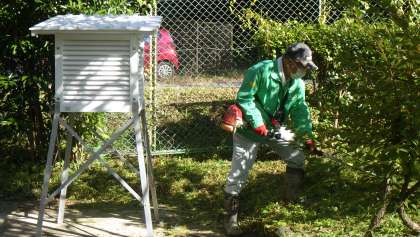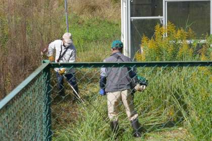 20日にあったPTAのクリーン活動で、校内の草はきれいになったため、環境ボランティアの皆さんには、理科室の裏やプールの裏などを刈っていただきました。また、中庭と運動場をつなぐ橋のフェンスのところのペンキを塗っていただきました。