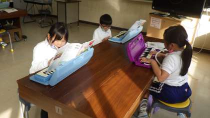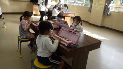 鍵盤ハーモニカ 1・2年生 公開日 2021/11/01 更新日 2021/11/01 お知らせ 新型コロナの状況により、しばらくできなかった鍵盤ハーモニカですが、今は練習ができるようになりました。1・2年生が「子犬のマーチ」を弾いていました。「1の指でド」「2の指でレ」のように、指を固定して上手に弾けるようになってきました。 1年 2年