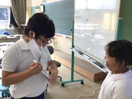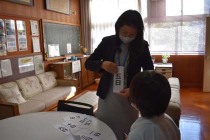 1年生が国語で日付の読み方を学習しました。「一日=ついたち」「五日=いつか」など、特別な読み方は覚えるよりほかありません。教科書に載っている日付の読み方がすらすら読めるように練習しました。