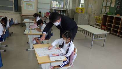 昨日、教育長が本校を訪問されました。4時間目の授業を見ていただきました。「どんな競技なの?」「何を書いているの?」などと子どもたちに質問をされました。
