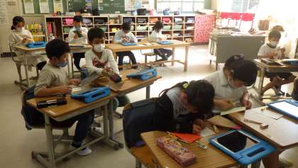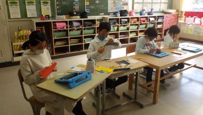 年賀状を作ろう 3・4年生 公開日 2021/11/18 更新日 2021/11/18 お知らせ 3・4年生の図工「年賀状を作ろう」の学習です。カラータック版画の版を作りました。切り絵のようにカラーの紙を切って台紙に貼っていきます。お正月らしい図柄を組み合わせて工夫して作っていました。数字や字を入れる場合は、左右逆に入れるよう気をつけていました。 3年 4年