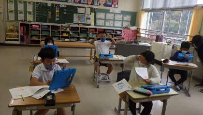 4年生が社会科でふるさとの食(愛知県)を調べていました。「五平餅」「手羽先」「日月もなか」「とんかつ」「ひつまぶし」などをタブレットで調べていました。調べたことをこれからリーフレットにしていく予定です。