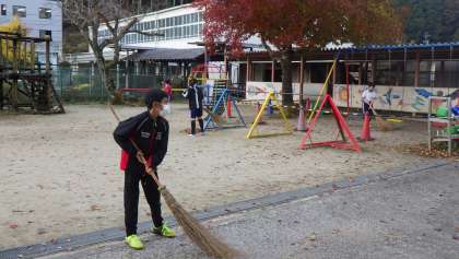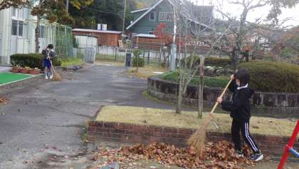 落ち葉掃き 4年生 公開日 2021/11/24 更新日 2021/11/24 お知らせ 最近、急に寒くなってきました。昨日(23日)は祝日でお休みだったので、朝、落ち葉がたくさん落ちていました。いつも環境美化委員の子どもたちが落ち葉を掃いてくれていますが、今日は追いつかないくらいでしたので、4年生がみんなで掃いてくれました。正門のイチョウも急に黄色く色づいたと思ったら、今日はたくさん落ちていました。 4年