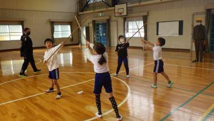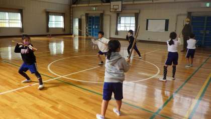 今日(12月8日)は、棒の手の3回目の練習でした。動きがそろうようになってきました。掛け声も出るようになってきましたが、ところどころ掛け声が小さくなってしまうところがあり、そこを何度も練習していました。