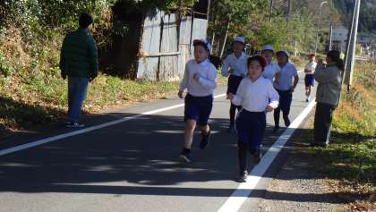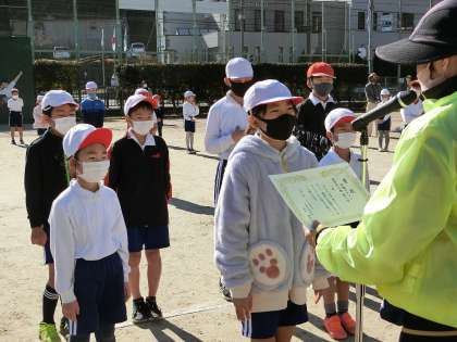 全員走り終わり、少し休憩をした後は、閉会式です。1〜3位までの表彰、代表児童の言葉がありました。賞状をもらう子はもちろん、他の子どもたちも、一生懸命走ったことですがすがしい、満足げな表情をしていました。
